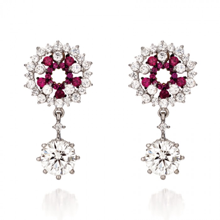 14K White Gold, Red & White Diamond Art Stone
